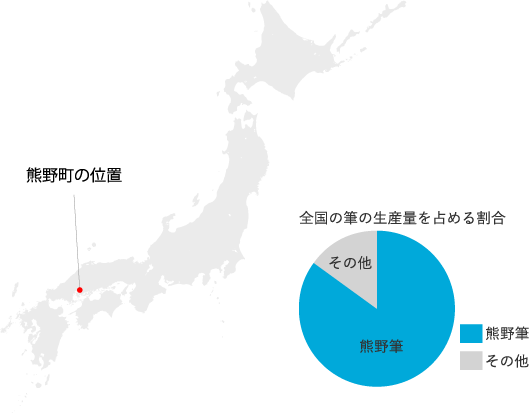 • 18世紀末(江戸時代末期)ごろ、平地の少ない熊野村では、農業だけでは生活が苦しいため、農閑期を利用して、奈良地方から筆や墨を仕入れ、それを売りさばいていたことが、きっかけとなり、筆と熊野の結びつきが生まれました。