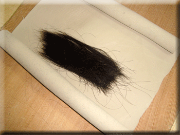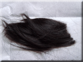 送られてきた赤ちゃんの髪の毛です。今から胎毛筆(赤ちゃん筆)を制作していきます。 |
