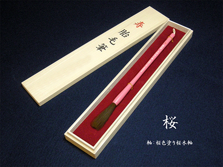 おめでたいとされる桜の木軸を原木に使用し、桜色の塗りで仕上げた胎毛筆(赤ちゃん筆)です。女の子に人気の商品です。