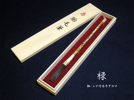 希少な水牛の角をダルマ(筆軸の髪の毛が付いている部分)に使用。高級感溢れる仕上がりです。