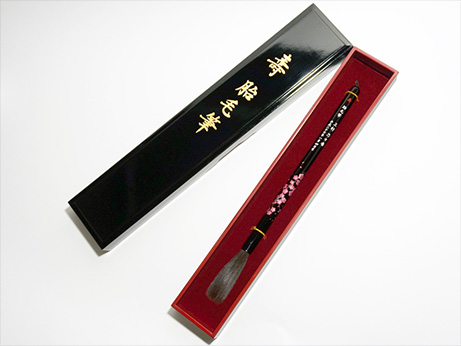 筆軸には、日本を代表する花の一つ、桜の文様に貝殻風の虹色光沢を散りばめた蒔絵風の美しい絵柄を施しております。