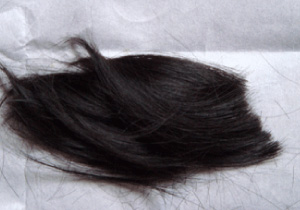 送られてきた赤ちゃんの髪の毛です。今から胎毛筆(赤ちゃん筆)を制作していきます。