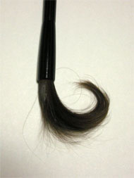 当社の赤ちゃん筆(胎毛筆)は、全国シェアの80%以上を誇る伝統的工芸品熊野筆の書道筆と同じ技法で制作しておりますので、ただ髪の毛を束ねただけではなく、書道筆と同じように毛先に良い毛を選別して制作している為、実際に書く事もできます。